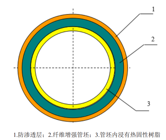 樣品內(nèi)翻襯復(fù)合軟管為增強(qiáng)纖維編織管坯,外敷有防滲透層,管坯內(nèi)浸有熱固性樹(shù)脂。