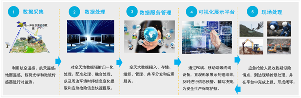 (2)數(shù)據(jù)處理:對(duì)空天地?cái)?shù)據(jù)進(jìn)行輻射歸一化處理、配準(zhǔn)處理、融合處理,對(duì)管道周邊環(huán)境時(shí)序時(shí)序信息變化提取和應(yīng)急搶險(xiǎn)信息快速提取。