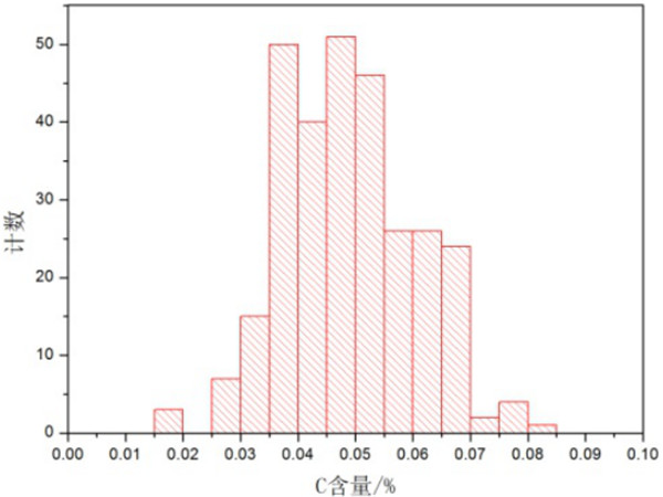 圖 1 X80鋼管的C含量分布統(tǒng)計