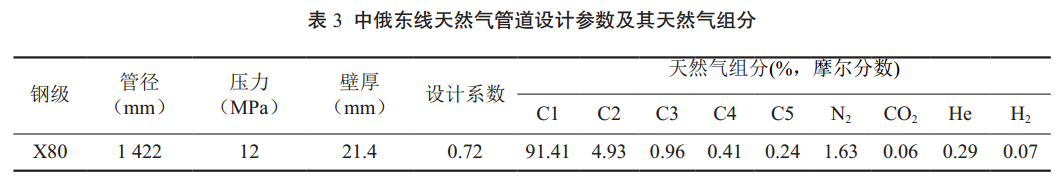 為防止天然氣管道開裂后發(fā)生延性裂紋的長程擴展,管材必須有足夠的韌性以保證天然氣管道一旦開裂能在一定長度范圍內(nèi)止裂。隨著鋼級、輸送壓力、管徑及設(shè)計系數(shù)不斷提高,管道的延性斷裂止裂問題也更加突出,是高鋼級管線鋼管應用的瓶頸技術(shù)問題。針對中俄東線天然氣管道工程,采用Battelle雙曲線(BTC)方法,并引入修正系數(shù),計算了一類地區(qū)管徑1 422 mm X80管道止裂的韌性需求,提出了鋼管母材的止裂韌性指標。
