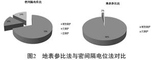 以新疆某油田埋地鋼質管道為例, 該油田長輸管道經過土壤環(huán)境有沙漠、 戈壁、 鹽堿灘、農田等, 土壤環(huán)境差別很大, 土壤電阻率變化非常劇烈, 這導致采用常規(guī)地表參比法進行陰極保護管地電位測試中含有很大的IR降, 無法通過地表電位來評價管道是否處于陰極保護系統(tǒng)有效保護, 2010年采用密間隔電位法(CIPS) 對1600km管道進行陰極保護有效性檢測發(fā)現有256km未達到-850mv, 有224km超過-1200mv, 而日常采用地表參比法測試僅發(fā)現32km未達到-850mv, 兩者相差很大, 兩種方法對比見圖2, 說明地表參比法存在較大IR降從而影響判斷的準確性。