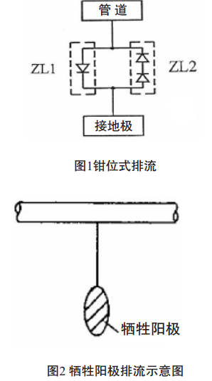 如果將排流接地體直接與管道連接, 由于接地電阻很小, 保護(hù)電流流失, 相當(dāng)大面積的防腐層破壞陰極保護(hù)電流量增加, 以致破壞陰極保護(hù)正常運行, 所以需要增加排流節(jié)。 排流節(jié)排流又分為電容排流二極管排流和鉗位式排流, 通常采用鉗位式排流。