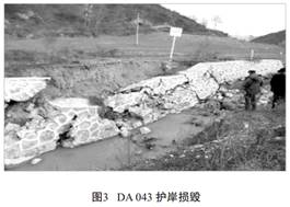 油氣管道穿越河溝道或順河溝道底敷設(shè)時(shí), 由于河溝道山洪侵蝕使河床下切或者掏蝕堤岸, 將造成露管、 漂管, 嚴(yán)重時(shí)可能折斷管線(圖3) 。