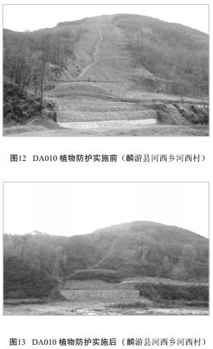 為此, 甘陜管理處大力實(shí)施生態(tài)環(huán)境治理工程, 目前主要是以恢復(fù)生態(tài)環(huán)境為主, 對(duì)于坡面采取梯田、 水平溝、 水平階、 魚(yú)鱗坑、 排水溝埂、 跌水等工程措施; 對(duì)溝壑進(jìn)行溝頭防護(hù)、 谷坊工程;對(duì)邊坡進(jìn)行植物防護(hù)、 坡面夯實(shí)、 干砌石防護(hù)和漿砌石護(hù)墻等。 同時(shí)輔以生物工程措施, 種植紫花苜蓿、 紫穗槐、 檸條等, 可以有效預(yù)防水土流失, 恢復(fù)管道周邊生態(tài)。 (圖12、 13) ◢