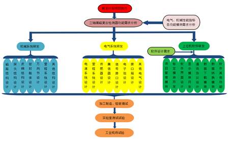 高清晰度復合檢測器將漏磁檢測、變形檢測、中心線測繪、壁厚測量、彎頭角度測量、溫度測量、壓力監(jiān)測、水露點測量等檢測技術復合在一起,主要包括機械系統(tǒng)、電氣系統(tǒng)、上位機軟件系統(tǒng),研發(fā)流程如圖4所示。