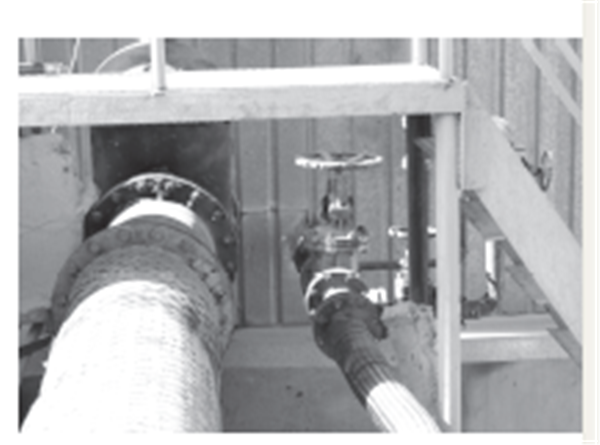 (4)固定式消防滅火系統(tǒng)通過(guò)消防管線輸送的泡沫液經(jīng)過(guò)罐體上的泡沫發(fā)生器進(jìn)入罐內(nèi)滅火。泡沫液必須首先擊碎泡沫發(fā)生器上的玻璃擋板才能進(jìn)入罐內(nèi)。所以泡沫發(fā)生器的玻璃擋板是否能順利的被擊碎,直接影響到大罐滅火(圖4)。