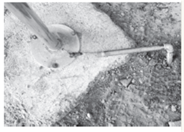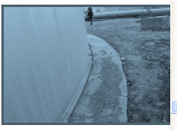 (3)罐體消防管線放水采用立管末端排水方式。而排出來(lái)的水直接排在罐體散水水泥板上, 經(jīng)過(guò)長(zhǎng)年運(yùn)行,導(dǎo)致水泥板加速老化,出現(xiàn)裂縫,嚴(yán)重的可能導(dǎo)致大罐地基變形,威脅大罐運(yùn)行安全(圖3)。