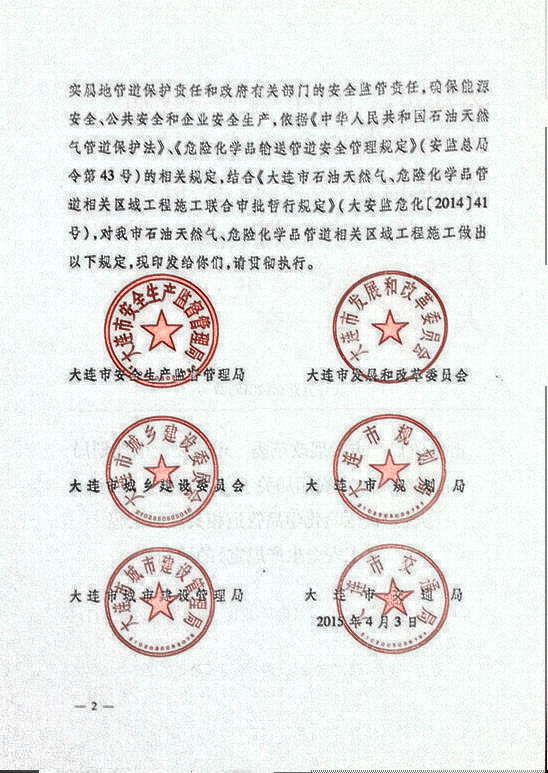 大連市石油天然氣、危險(xiǎn)化學(xué)品管道相關(guān)區(qū)域工程施工安全生產(chǎn)規(guī)定
