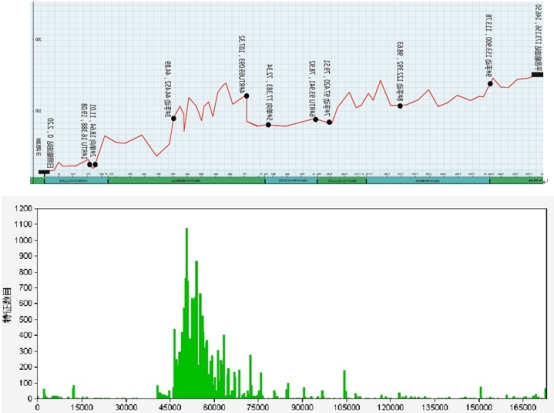 圖5 某原油管道內(nèi)腐蝕缺陷分布與里程-高程關(guān)系