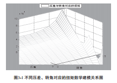 通過(guò)此關(guān)系圖可在MATLAB中畫(huà)出當(dāng)壓差逐漸減少時(shí)的轉(zhuǎn)角與所需執(zhí)行機(jī)構(gòu)扭矩的關(guān)系曲線(xiàn),如圖3-2所示。