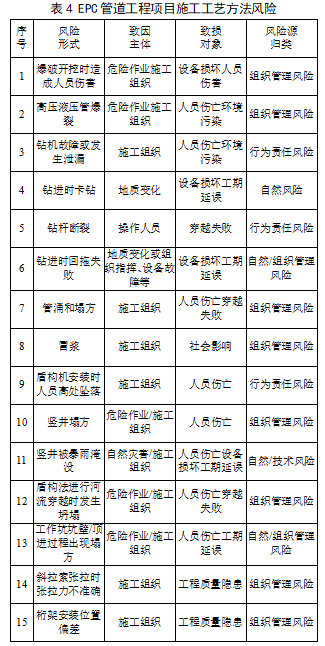 在管道設(shè)計(jì)施工期間有效地識(shí)別可能遇到的危害因素,進(jìn)而提前制定防控措施與應(yīng)急預(yù)案,可以預(yù)防和控制風(fēng)險(xiǎn)的產(chǎn)生,保證管道工程施工順利推進(jìn)及建成后安全、高效運(yùn)行。