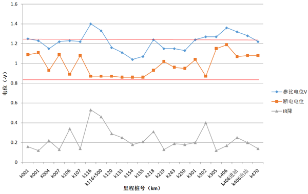 (2)管道陰極保護(hù)應(yīng)作為一個(gè)系統(tǒng)看待,在故障處理時(shí),應(yīng)上下游聯(lián)合整改調(diào)試,使得管道沿線(xiàn)保護(hù)電位達(dá)標(biāo)。