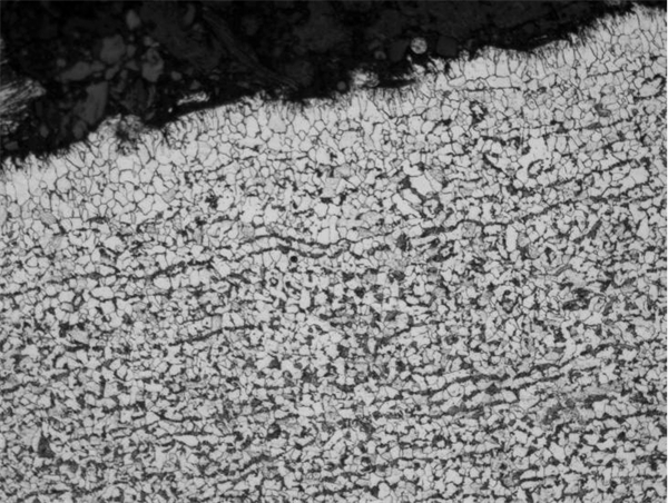 圖7 王一計(jì)管道試樣腐蝕坑周圍金相組織(100×)