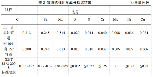 2段管道試樣的化學(xué)成分檢測(cè)結(jié)果見(jiàn)表 2。