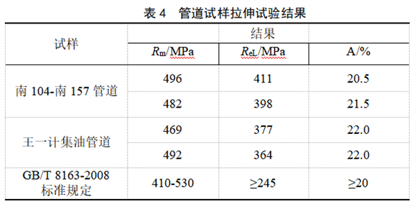 2段管道試樣的拉伸試驗(yàn)結(jié)果見(jiàn)表4。