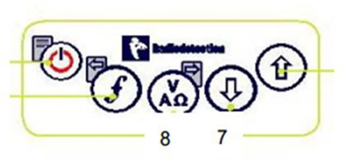 ( 2)接收機(jī)。打開接收機(jī)電源 ,調(diào)節(jié)頻率 ,通過(guò)向上/向下箭頭 調(diào)節(jié)信號(hào),用天線鍵 來(lái)進(jìn)行谷峰值、峰值、谷值、信號(hào)天線模式的切換。頻率調(diào)到8KHz(與發(fā)射機(jī)頻率要保持一致)。接收機(jī)表盤如圖3所示。