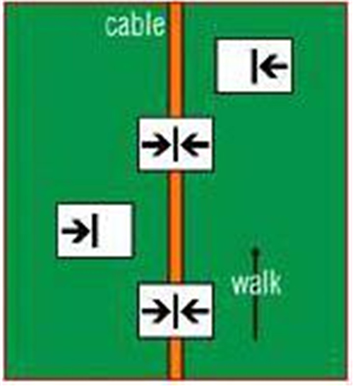 ( 5)連續(xù)擺動(dòng)接收機(jī)并延光纜方向前進(jìn),跟蹤光纜的走向,邊走邊擺動(dòng)接收機(jī),保證光纜就在腳下。