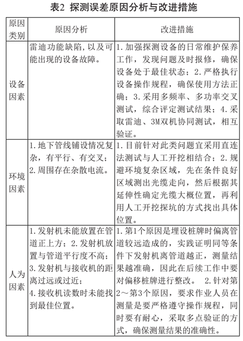 使作業(yè)人員掌握正確的測(cè)量方法和最佳的測(cè)量方式,采取多方面的的驗(yàn)證措施,才能提高光纜的定位準(zhǔn)確度,為后續(xù)工作奠定良好基礎(chǔ)。