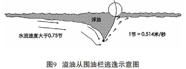 因此, 在使用各種圍油欄時, 一定要確保圍油欄和水流之間的垂直相對速度小于0.75節(jié)。