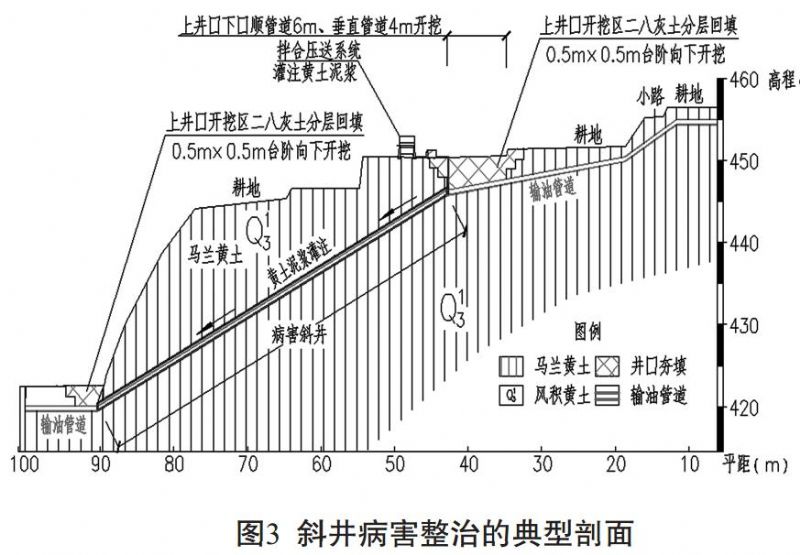 3、 通過黃土泥漿配合比試驗及蘭鄭長輸油管道陜西段26處斜井大面積施工的效果, 有力地驗證了斜井病害整治方案的可行性、 經(jīng)濟性及安全性。