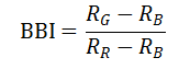 同其它地物相比,彩色板房顏色特殊,具有特殊的光譜特征,其光譜反射率在可見(jiàn)光的藍(lán)、綠、紅波段均較低,據(jù)此,本研究構(gòu)建了板房光譜識(shí)別指數(shù)(BBI,Blue Building Index)進(jìn)行彩色板房的識(shí)別。式中,RB、RG、RR分別為可見(jiàn)光藍(lán)、綠、紅波段的反射率。