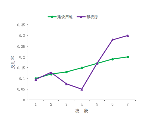 顏色是地物光譜特征的反映,裸土的反射光譜曲線與其它地物差異明顯(右圖),光譜反射率從可見(jiàn)光到紅外波段逐漸上升,特別是在中紅外波段,裸土的光譜反射率最高,本研究利用其這一特性構(gòu)建歸一化裸土指數(shù)(NDSI)進(jìn)行裸土的提取。