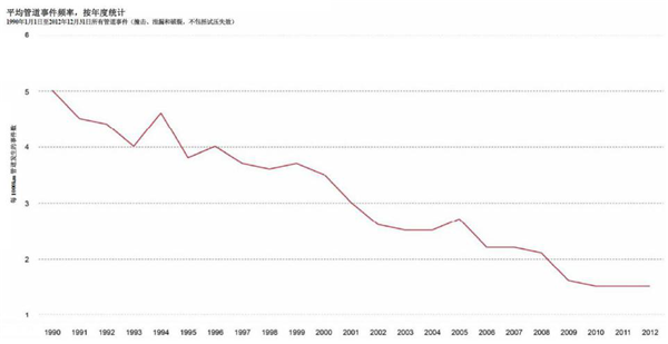1990年以來(lái),加拿大管道失效頻率逐年下降(圖16)。