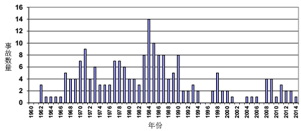 圖19 UKOPA歷年管道失效數(shù)量(1962-2014年)