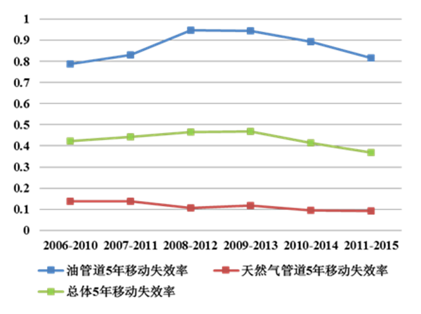 2006—2015年,管道總體失效率穩(wěn)中有降。