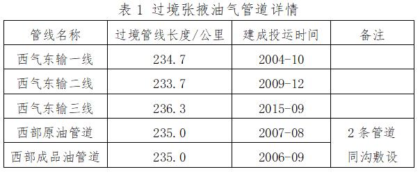 一、油氣管道通過(guò)張掖市的基本情況