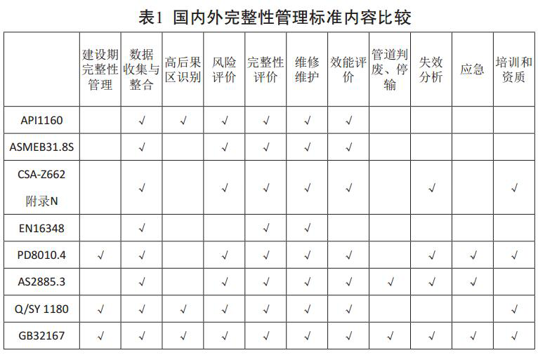 管道完整性管理標(biāo)準(zhǔn)對比分析與啟示