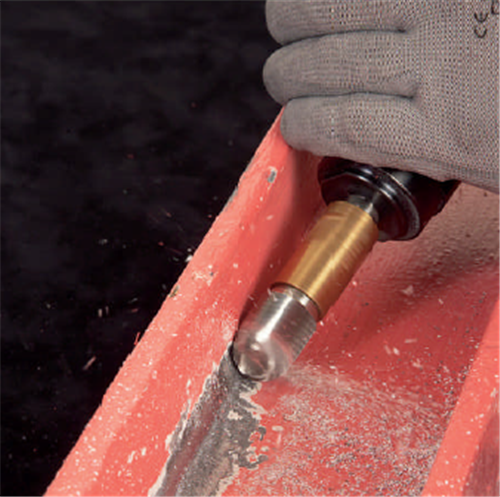 傳統(tǒng)的防腐層去除方法是乙炔火焰燒烤和手工砂輪打磨。手工砂輪打磨工作效率低,且打磨過程中會(huì)產(chǎn)生大量火花,在應(yīng)急搶修工作中會(huì)產(chǎn)生安全隱患。青島“11.22”輸油管道泄漏爆炸事故的直接原因就是現(xiàn)場搶險(xiǎn)人員采用液壓破碎錘在暗渠蓋板上打孔破碎,產(chǎn)生撞擊火花,引發(fā)暗渠內(nèi)油氣爆炸。
