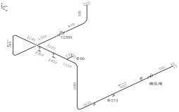 某站場(chǎng)振動(dòng)管道材質(zhì)為L360N,管道規(guī)格Ф273×6.3 mm。投運(yùn)時(shí)間2014年11月,介質(zhì)為純凈天然氣,壓力表為3.0 MPa,出站壓力為2.6 MPa,設(shè)計(jì)溫度-50~70℃,運(yùn)行溫度5~20℃。通過前期資料調(diào)查和現(xiàn)場(chǎng)調(diào)研,該管道運(yùn)行時(shí)存在較大振動(dòng)并伴有管內(nèi)介質(zhì)嘯叫。初步懷疑振動(dòng)是因管道改造設(shè)計(jì)不盡合理、流道變化較劇烈、上下游壓降較大等因素造成的。