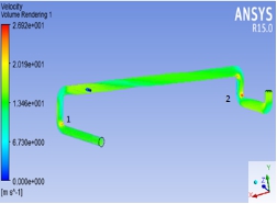 (3)采用專業(yè)流場(chǎng)分析軟件(Fluent、ANSYS-CFX等)對(duì)振動(dòng)管道管內(nèi)流體進(jìn)行流場(chǎng)分析,主要計(jì)算管內(nèi)流體的流場(chǎng)分布、流速分布,重點(diǎn)關(guān)注介質(zhì)對(duì)管道的沖擊力及管體表面介質(zhì)流速、剪切力較大的部位。