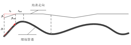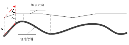 (2)缺陷參考特征(通常為臨近的水平彎頭)與缺陷位置之間的埋深調查間隔以內檢測報告的管節(jié)長度為依據,一般不大于12米,且冷彎彎管位置或地形起伏較大的區(qū)域應進行加密測量。