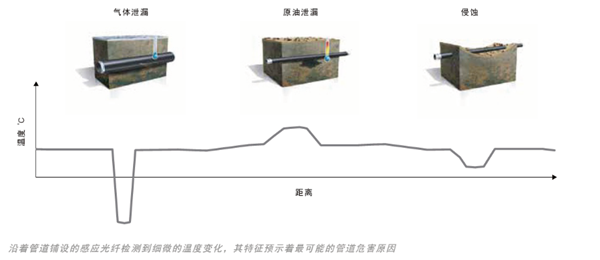 (2)靈敏度:初始溫度(泄漏)、應變(地面運動)和振動(侵入)事件可以及早發(fā)現(xiàn),局部控制,從而使操作者有時間采取行動。