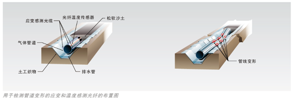 為監(jiān)測管道的變形狀況,將光纖鋪設(shè)在管道的表面,管道任何的形變都直接反饋到光纖中。監(jiān)測形變過程中光纖的拉伸和壓縮變化,并觸發(fā)警報(圖 5)。