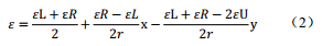 式中a 、 b 、 c 為待求未知數(shù); (x, y)為圓周任意一點(diǎn)坐標(biāo); ε為點(diǎn)(x, y)的軸向應(yīng)變值。