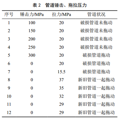 (3)選擇合適的夯錘錘擊和滑輪組牽引,錘擊壓力不大于管道最低屈服強(qiáng)度,牽引拉力不大于管道最低抗拉強(qiáng)度。