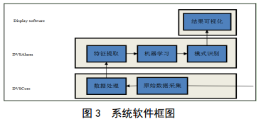 系統(tǒng)軟件分為三層,第一層為儀表層,主要功能為采集信號的原始數(shù)據(jù)和原始數(shù)據(jù)處理;第二層為算法層,主要接收第一層軟件傳輸過來的數(shù)據(jù),對數(shù)據(jù)進行分析處理,提取信號特征,對數(shù)據(jù)進行模式識別驗證,并將模式識別結果傳遞到第三層;第三層接收第二層軟件傳遞過來的數(shù)據(jù)處理結果,結合地理信息將處理結果展示并進行報警提示(圖3)。