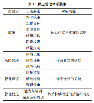 (1)保衛(wèi)工作體系要素。以PDCA循環(huán)為基礎(chǔ),各要素環(huán)環(huán)相扣,缺一不可,形成完整管理鏈條。體系最終以文件化的形式呈現(xiàn)(表 1)。