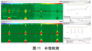 采用開發(fā)的先進(jìn)專用軟件,特別是簡(jiǎn)化的標(biāo)準(zhǔn)化探頭和校準(zhǔn),進(jìn)行了實(shí)時(shí)提離檢測(cè)和補(bǔ)償檢測(cè),如圖 10和圖 11所示。