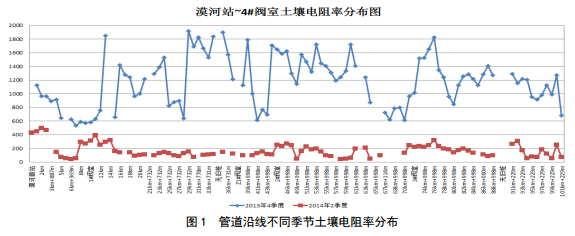 (2)在陰保站地床位置及長(zhǎng)效參比設(shè)置合理的情況下,根據(jù)不同季節(jié)土壤電阻率變化導(dǎo)致管道沿線IR降的變化,調(diào)整適宜的恒電位儀輸出。