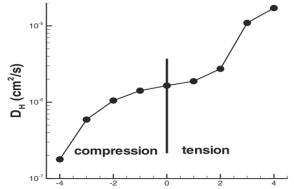 氫原子的擴(kuò)散率D與應(yīng)力和溫度相關(guān)。氫原子移動(dòng)性和應(yīng)力以及溫度的關(guān)系,以及氫原子濃度和溫度的關(guān)系如圖 4所示。