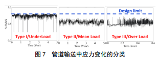 圖 7中展示了加載管道應(yīng)力變化的分類,主要可以歸類為欠載、均載和過載。其中欠載譜圖最為危險(xiǎn),因此將以欠載譜圖為例,將模型應(yīng)用于管道壽命預(yù)測。