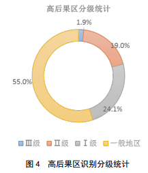 2 0 1 8年,公司通過智能識別系統(tǒng),開展了1 385 km管道的高后果區(qū)識別工作,共識別出高后果區(qū)617段,里程為622.3 km,其中Ⅲ級26.3 km,占比1.9%;Ⅱ級262.8 km,占比19.0%;Ⅰ級333.2 km,占比24.1%(圖 4)。
