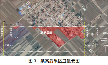 ①高后果區(qū)邊界設(shè)定為距離最近一幢建筑物外邊緣200 m,如圖 3所示。
