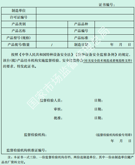 特種設(shè)備監(jiān)督檢驗(yàn)證書(shū)(壓力管道元件制造)