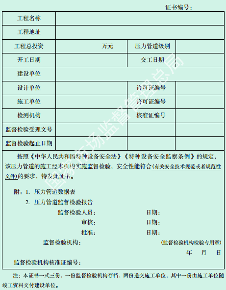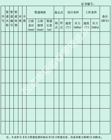 特種設(shè)備監(jiān)督檢驗(yàn)證書(shū)(壓力管道安裝、 改造和重大修理)
