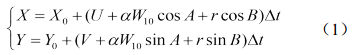式中α 為風(fēng)拖曳系數(shù), f(θ)為科氏力引起的偏轉(zhuǎn)角的函數(shù), θ 為偏轉(zhuǎn)角。